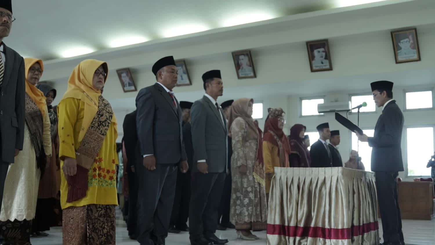 Limapuluh Kota– Bupati Limapuluh Kota Safaruddin Dt.Bandaro Rajo meminta agar jajaran Kepala Unit Pelaksana Teknis Daerah (UPTD) Satuan Pendidikan Dasar dan Pendidikan Menengah se-Kabupaten Limapuluh Kota berkomitmen untuk meneguhkan tekad dan semangat dalam meningkatkan pengabdian untuk meningkatkan kualitas pendidikan di Limapuluh Kota. Terlebih jika dihubungkan dengan misi prioritas daerah, yang menempatkan peningkatan kualitas sumber daya manusia sebagai program prioritas pertama dalam mewujudkan visi daerah yakni mewujudkan Limapuluh Kota yang Madani, beradat, dan berbudaya dalam kerangka Adat Basandi Syarak, Syarak Basandi Kitabullah. Hal tersebut disampaikan Bupati Safaruddin ketika memberikan sambutan sesaat setelah acara pelantikan beserta pengambilan sumpah 104 Kepala Unit Pelaksana Teknis Daerah (UPTD) Satuan Pendidikan Sekolah Dasar (SD) dan 8 Kepala Unit Pelaksana Teknis Daerah (UPTD) Satuan Pendidikan Sekolah Menengah Pertama di Aula Kantor Dinas Kesehatan Limapuluh Kota, Kamis sore, (03/11/2022) yang turut dihadiri oleh Sekretaris Daerah Widya Putra, Kepala Badan Keuangan Win Hari Endi, Kepala BKPSDM Adrian Wahyudi, Kepala Dinas Pendidikan dan Kebudayaan Limapuluh Kota Indrawati, dan Sekretaris Dinas Sosial Afri Efendi.