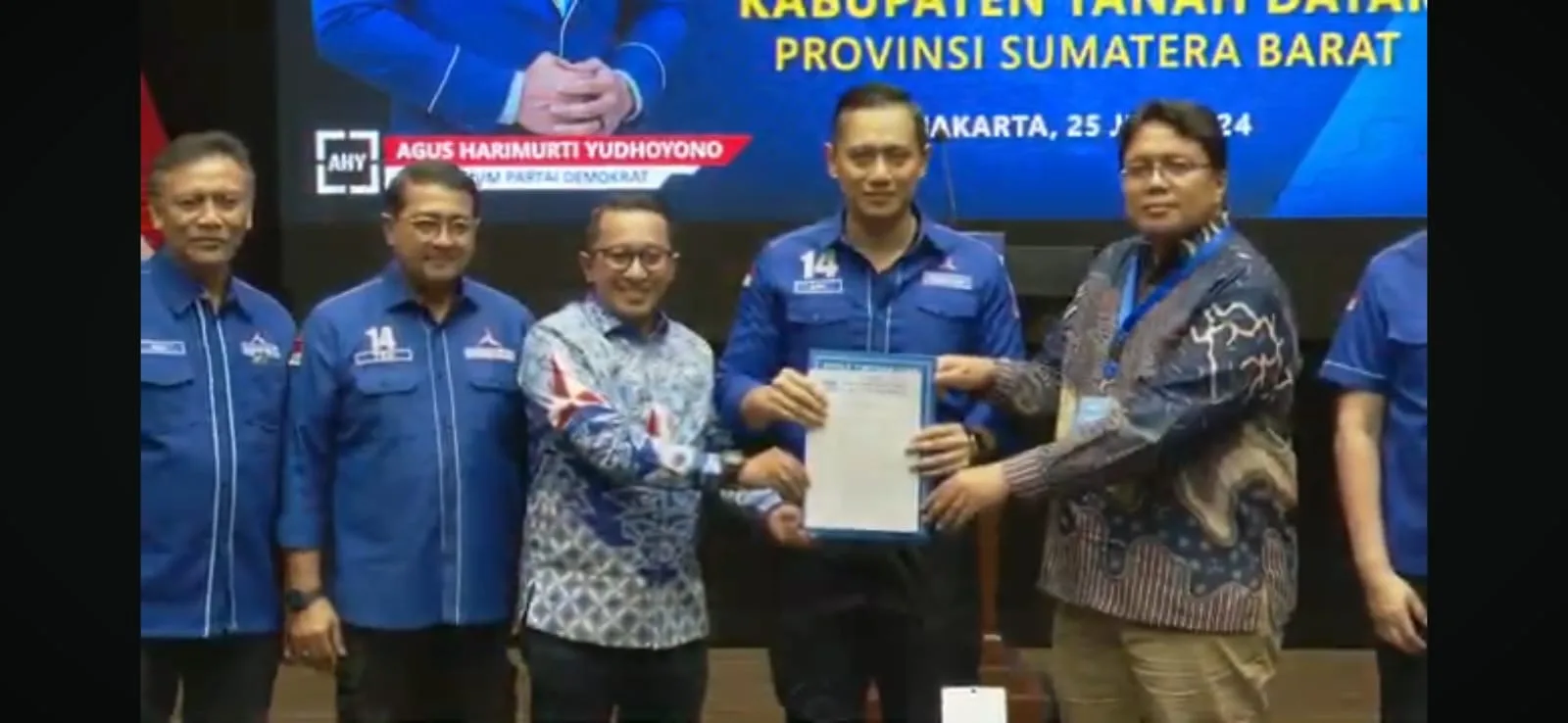 Rekomendasi tersebut diserahkan langsung oleh Ketua Umum Partai Demokrat, Agus Harimurti Yudhoyono, yang diterima langsung oleh Eka Putra, S.E, M.M dan Ahmad Fadly Syuirsyam, S.Psi di Menteng Jakarta, Kamis (25/7).