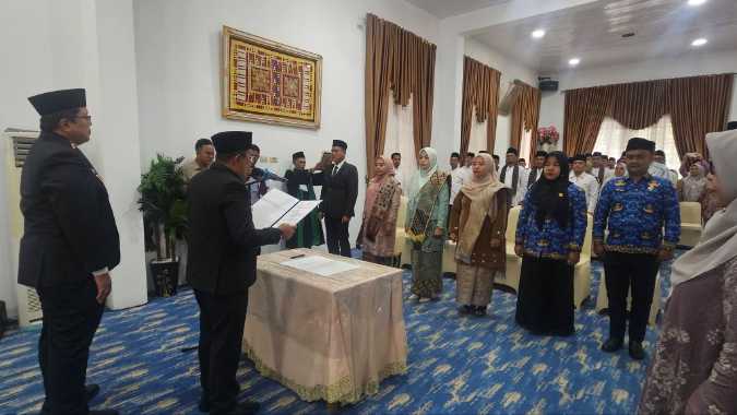 Dalam kegiatan yang turut didampingi Wakil Bupati Ahmad Fadly, S.Psi, Sekda Abdurrahman Hadi, para Asisten, Staf Ahli Bupati dan kepala OPD, Bupati Eka Putra melantik dan mengambil sumpah jabatan sebanyak 4 orang pejabat managerial dan 2 orang pejabat pengawas.