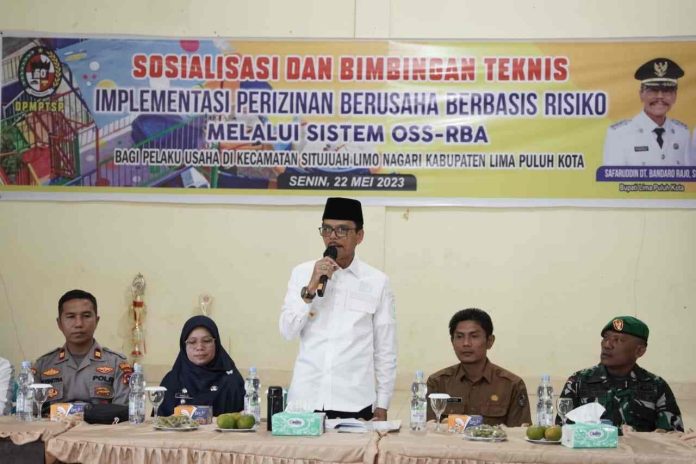 Demikian pokok pikiran Bupati Lima Puluh Kota, Safaruddin Dt. Bandaro Rajo saat membuka sosialisasi dan bimbingan teknis implementasi perizinan berusaha berbasis resiko bagi pelaku usaha di Kecamatan Situjuah Limo Nagari, Senin, (22/05/23).