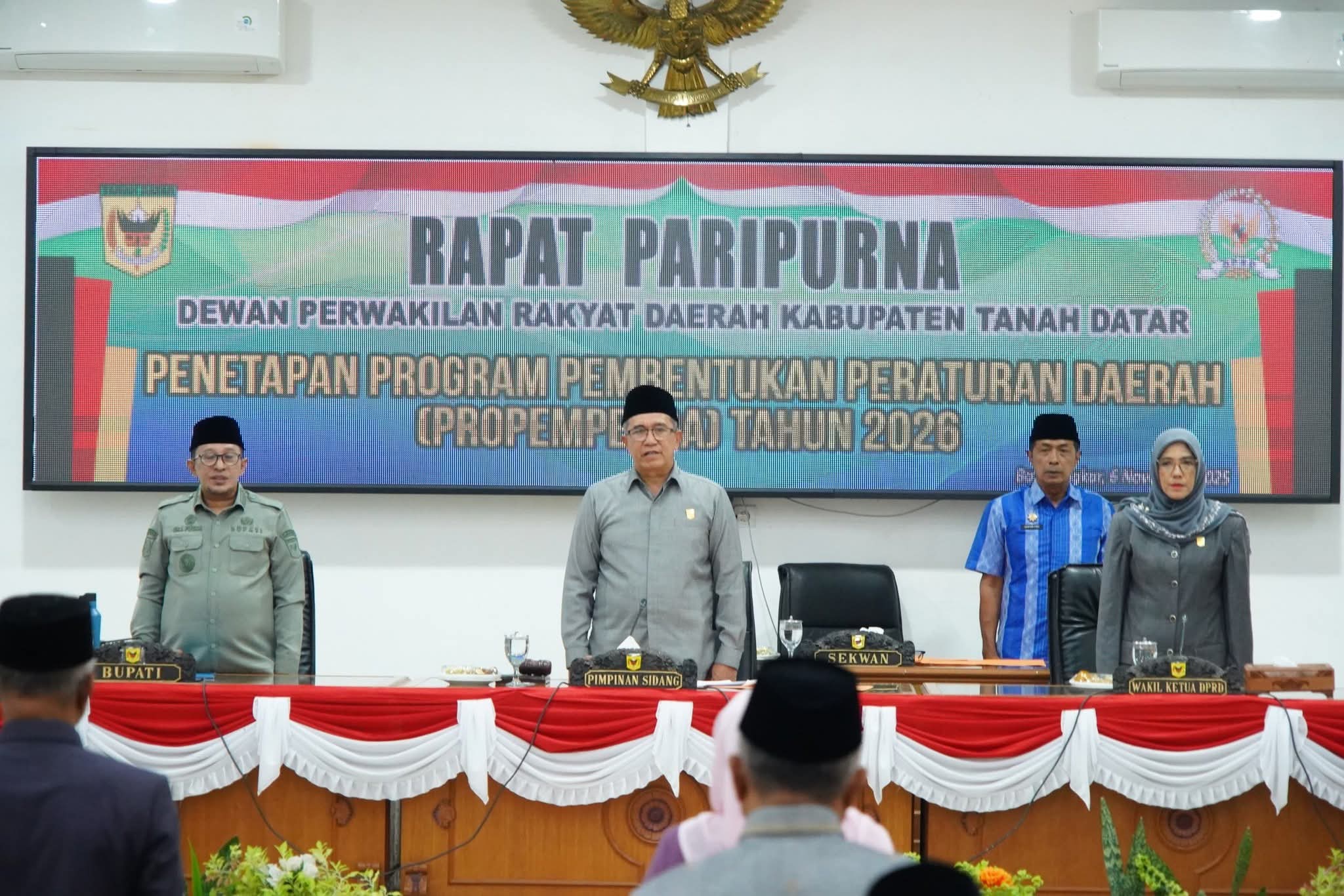 Indocorners.com|Tanah Datar – Dewan Perwakilan Rakyat Daerah (DPRD) Kabupaten Tanah Datar menggelar Rapat Paripurna Penetapan Program Pembentukan Peraturan Daerah (Propemperda) Kabupaten Tanah Datar Tahun 2026, Kamis (6/11/2025) di ruang sidang utama DPRD setempat di Pagaruyung.