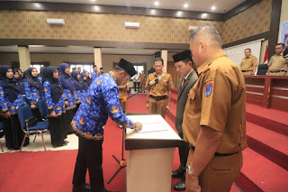 Pj Wako Rida Ananda yang diwakili oleh Plt Sekda Dafrul Pasi dalam sambutannya menyampaikan ucapan selamat kepada 213 guru dan 21 tenaga teknis yang dilantik secara resmi setelah proses panjang hingga berstatus P3K pada hari ini.