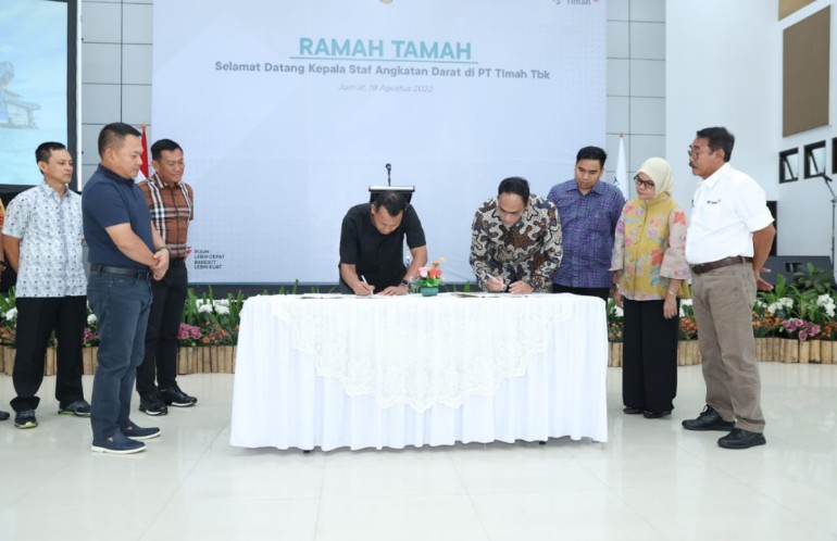 Setelah pelaksanaan olahraga bersama, Kasad menyaksikan penandatanganan kerja sama antara pihak TNI AD dengan pihak PT. Timah Tbk tentang penguatan pembinaan teritorial di wilayah izin usaha pertambangan PT. Timah Tbk Wilayah Provinsi Bangka Belitung.