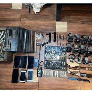 (40) Pihak kepolisian berhasil mengamankan barang bukti berupa 10 buah mata kunci letter T, 2 buah kunci letter T, 16 rumah kunci kontak, 6 buah kunci kontak, 4 buah plat nomor kendaraan roda dua, 1 buah GPS, 3 buah golok, 3 buah set kunci penjebol rumah kunci kontak, 50 buah kunci busi motor, 9 buah handphone dan 9 unit kendaraan sepeda motor roda dua.(19/4/2023)
