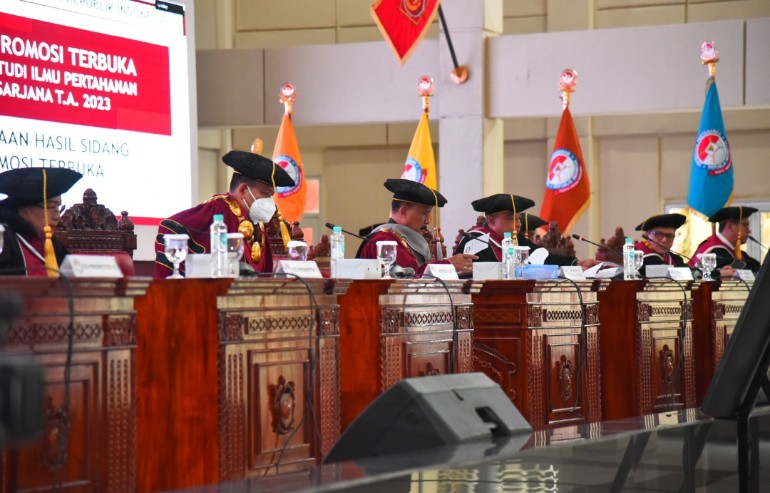 Sidang Terbuka Promosi Doktor merupakan bentuk dari seorang yang telah berhasil menuntaskan studi program doktor yang sudah diteliti nantinya akan dipertanggung jawabkan dalam tugas akhirnya. Program Doktor Universitas Pertahanan Republik Indonesia melakukan promosi doktor kepada Laksamana Pertama TNI Suharto, S.H., M.Si.(Han)., yang saat ini menjabat sebagai Komandan Pangkalan Utama TNI AL (Danlantamal) XII Pontianak.