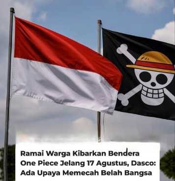 Indocorners.com|Pengibaran bendera One Piece ini bertolak belakang dengan instruksi Presiden Prabowo Subianto yang meminta masyarakat mengibarkan bendera merah putih mulai 1 Agustus 2025.