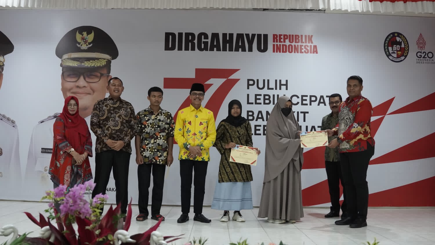 Bupati Safaruddin dalam sambutannya menyampaikan bahwa kegiatan ini merupakan bentuk rasa syukur kepada Tuhan Yang Maha Esa yang telah meridhoi semangat perjuangan pergerakan para pendiri Bangsa untuk memproklamirkan Kemerdekaan Negara ini 77 tahun yang silam. Selanjutnya beliau berpesan agar momentum HUT RI Ke-77 dapat dimaknai masyarakat terutama anak muda untuk meningkatkan semangat dalam berkreasi dan berinovasi dalam mengisi kemerdekaan Republik Indonesia. “Sesuai dengan tema pulih lebih cepat bangkit lebih kuat, Kami mengajak semua stakeholder untuk cepat bangkit dalam menghadapi cobaan serta rintangan yang ada di depan mata serta meminta agar semua elemen baik di pemerintahan dan masyarakat berkolaborasi dalam membangun daerah dan bangsa”, pinta Bupati Safaruddin.