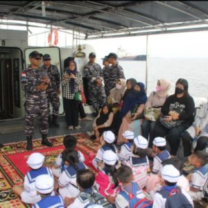 Indocorners.com | Dumai – TNI AL Lanal Dumai,- Pangkalan TNI AL Dumai mengajak 20 siswa-siswi dan guru serta wali murid TK Yayasan Hang Tuah Dumai melaksanakan Joy Sailing disekitar Perairan Dumai menggunakan Kapal Angkatan Laut (KAL) Tedung I-1-37, Rabu (18/01/2023).